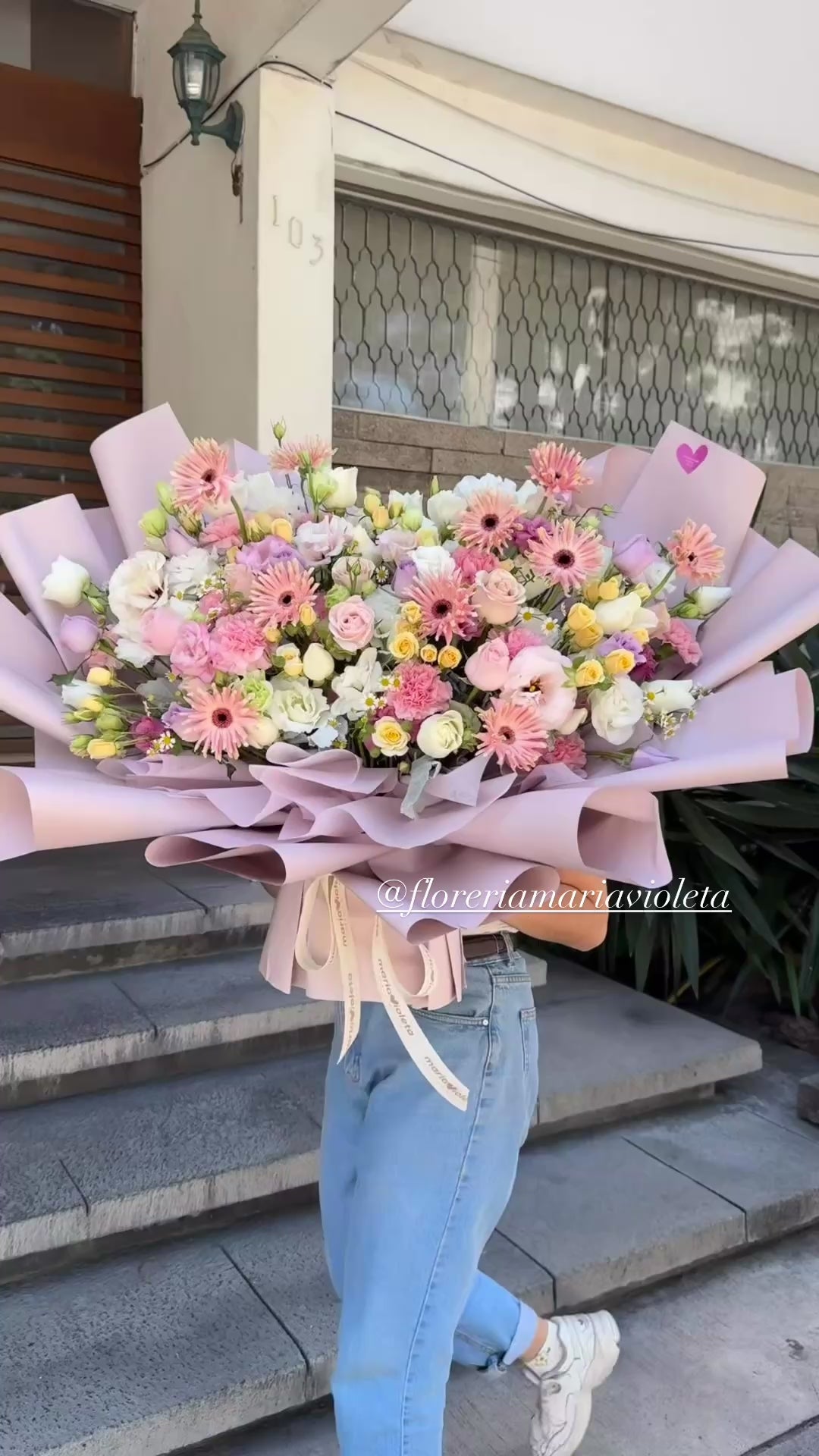 *Nuestras flores son del día; pueden variar en tamaño y tipo. El embalaje esta sujeto a disponibilidad pero la esencia de Maria Violeta siempre se conservará.✨