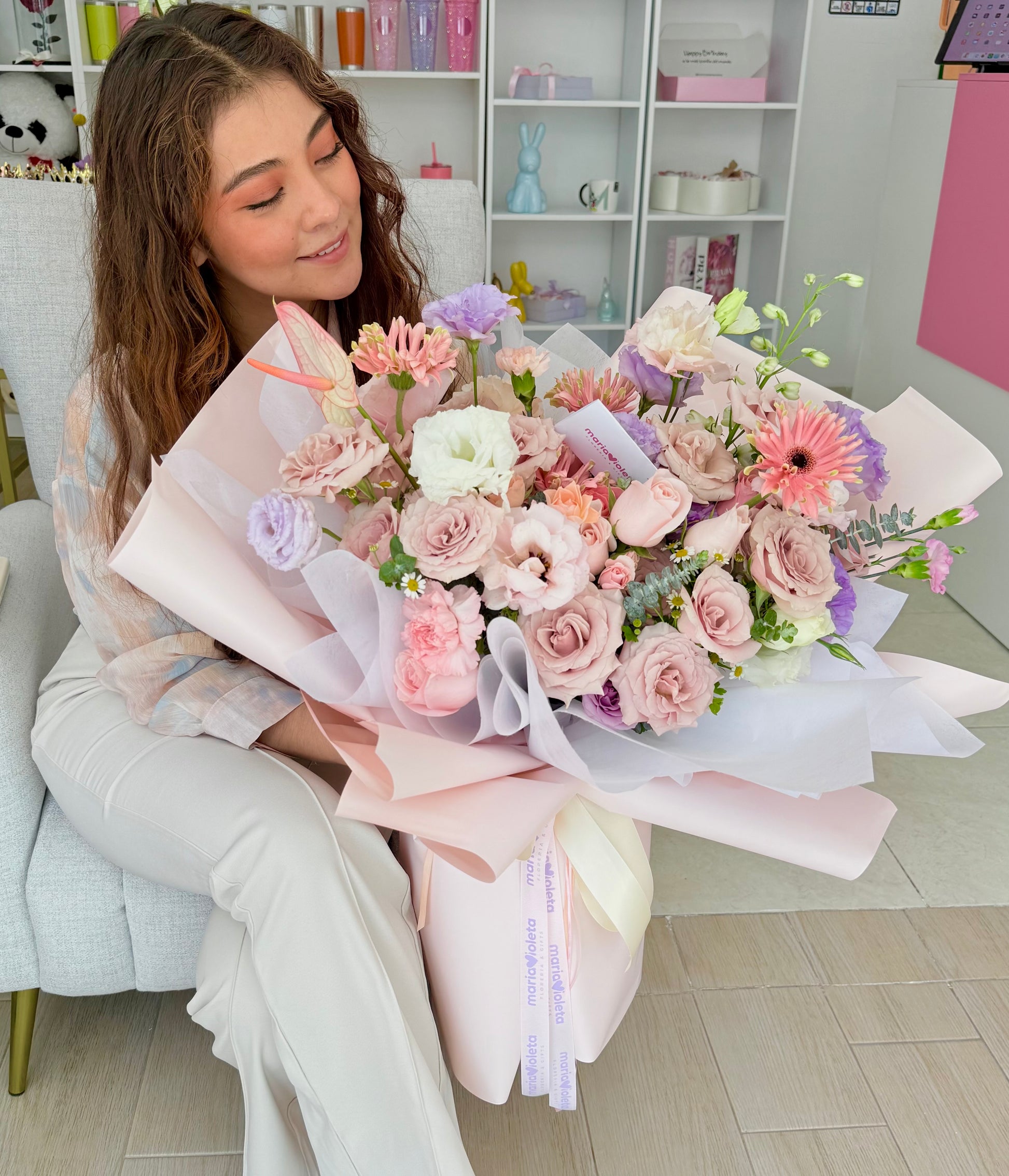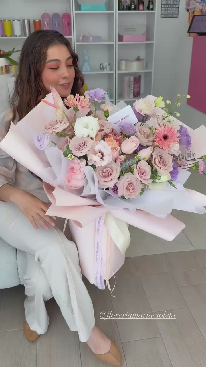 *Nuestras flores son del día; pueden variar en tamaño y tipo. El embalaje esta sujeto a disponibilidad pero la esencia de Maria Violeta siempre se conservará.✨