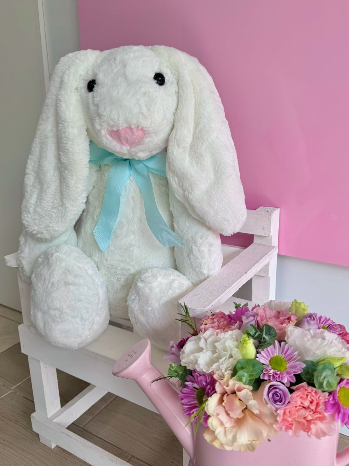 Conejito blanco, suave y esponjoso. Tierno y abrazable, ideal para acompañar en todo momento.
