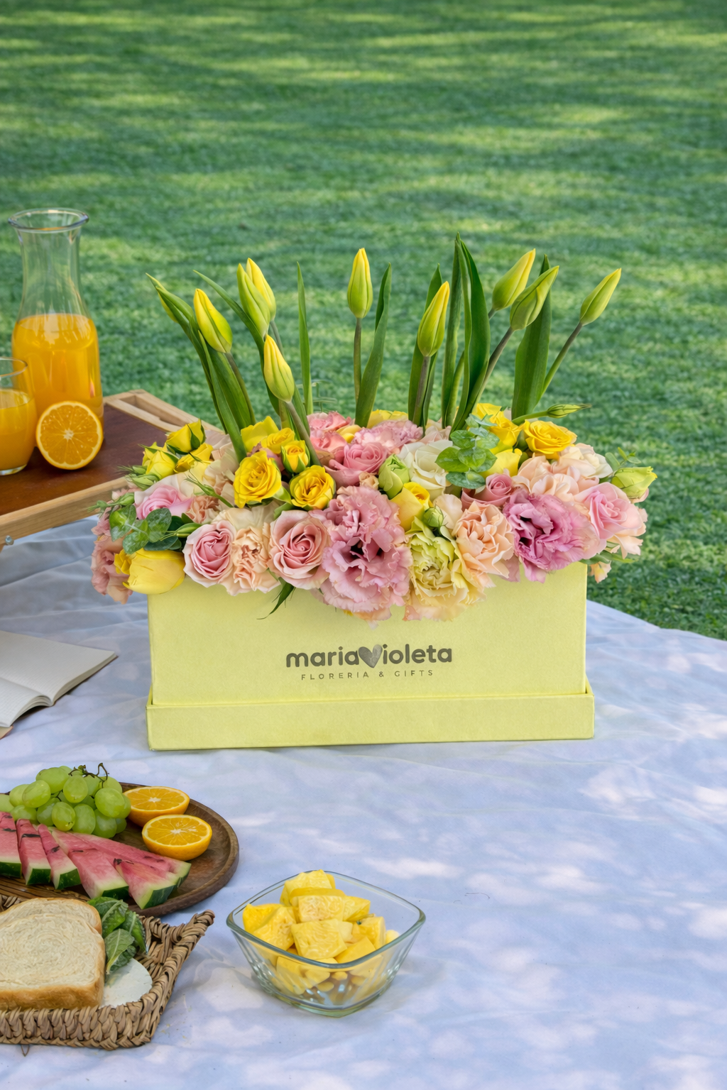 *Debido a la alta demanda en esta temporada, algunas flores amarillas, envolturas y embalajes pueden variar según disponibilidad.