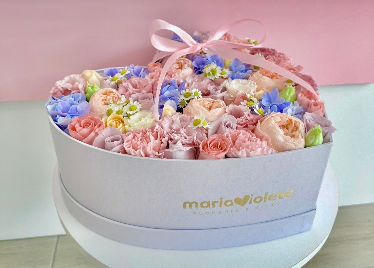 *Nuestras flores son del día; pueden variar en tamaño, color y tipo. El embalaje esta sujeto a disponibilidad pero la esencia de Maria Violeta siempre se conservará.✨